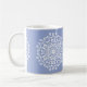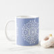 Esta mandala blanca se asienta sobre un polvoriento fondo de guijarros. Los colores son suaves y relajantes. Parte de la colección Mola Mandala.