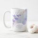 Esta elegante colección de bodas utiliza una impresionante paleta de colores que incluye perwinkle, ciruela y blues para crear artículos de papelería y fiestas para su día especial. Las flores acuáticas y las pinturas espumosas proporcionan un paisaje llamativo. La taza de café, que se muestra aquí para una dama de honor, también se puede usar para cualquier otro miembro importante de la fiesta de boda. Se proporciona una plantilla para agregar fácilmente un nombre personal y el título de la fiesta de boda junto con la fecha de boda. Busque ID940 para ver todos los productos de este conjunto de bodas.