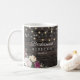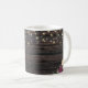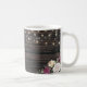 Diseño rústico de Mug Boda de madera con detalles de encaje y cuerda de luces. Los bonitos detalles florales están en primer plano y hacen de este diseño elegante y moda. El diseño es fácil de personalizar, si desea cambiar los tipos de letra haga clic en el personalizar. Este diseño es perfecto para bodas al aire libre y bodas temáticos en graneros. Diseñado para coordinar con nuestra colección de bodas "Rustic Floral Wood Boda".