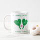 Celebra tu amor mutuo y tu amor por el pickleball al mismo tiempo con esta taza de café personalizada. Cuenta con ilustraciones de dos paletas de pickleball en forma de corazón en verde y una pelota de pickleball rosa y está lista para ser personalizada con tu propio título, tus iniciales en las paletas y tus nombres debajo.