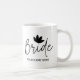 Taza de Café Bodas de Novia Elegantes Personalizadas. Totalmente Personalizable. ¡Tazas de Café para Novias con estilo y modernas! Obtenga tazas de café para la fiesta de bodas, un gran accesorio para los elementos esenciales de ese día especial. Esta taza de café de Novia de Boda presenta la palabra ''Novia'' en un estilo de letra elegante y con estilo con flores negras en la parte superior. Debajo de este diseño está el nombre que puede personalizar fácilmente con el nombre o iniciales de su novia.