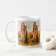 Esta taza de café boho presenta una copia restaurada de un poster cromolitográfico para el poster teatral Buffalo Bill Cody Wild West que retrata a He Nu Kaw ["el primer nacido"]; "La doncella india más guapa del mundo". Este poster promocional fue impreso alrededor de 1880 por W.J. Morgan & Company, Lithographers [The Morgan Lithograph Company], Chicago. Esta poster representa a una hermosa joven nativa norteamericana vestida con ropa tradicional e idealizada de nativos estadounidenses usando un pequeño tocado y sosteniendo el arco de un arquero mientras ella carga un temblor de flechas sobre su espalda.