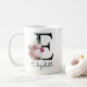 Taza De Café Boho floral rosa moderno inicial E