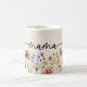 Taza de café Boho Wildflowers Mama. Bebe con estilo con esta encantadora taza, que presenta un suave borde inferior de flores silvestres boho en cálidos tonos de óxido, terracota, naranja quemada, beige y verde salvia, junto con "Mama" en letra moderna. Ya sea disfrutando de una mañana invernal acogedora, un nuevo comienzo primaveral, una tarde soleada de verano o una noche fresca de otoño, esta taza es un recordatorio diario perfecto de la belleza de la maternidad. Un regalo reflexivo o un capricho personal: ¡personaliza la tuya hoy mismo!