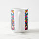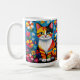 A cute cat themed coffee mug. A cute colorful boho cat sitting in flowers and surrounded by butterflies. The art is in an impasto oil paper quilling style.