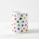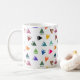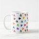 Esta taza tiene un diseño boho de triángulos con puntos dispersos por el diseño en colores boho.