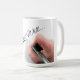 Celebra el arte de la escritura a mano con esta elegante taza de café con un diseño de mano, pluma y escritura. Perfecto para escritores, artistas o cualquiera que aprecie la belleza de las notas escritas a mano.