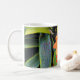 Una flor tropical brillante rodeada de follaje verde aparece en esta taza. Ideal para tomar un café o una bebida favorita.