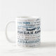Cada taza tiene más de 40 abreviaturas, lingo, llamadas y otras comunicaciones de cabina. Creado con la ayuda de pilotos de servicio activo y veteranos de todas las ramas, y actualizado en 2022, el lingo es la charla de cabina muy específica que usan los pilotos militares. Nuestras robustas jarras de cerámica vienen en 12 jets diferentes más cuatro áreas específicas— una para los repostadores aéreos, una para la aviación naval, otra para los pilotos de combate (todas las ramas), y la jarra de SAC - Comando Aéreo Estratégico.