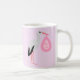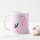 Esta impresionante taza presenta una imagen gráfica de una linda cigüeña blanca con plumas de cola negra sujetando un paquete de mantas rosa pálido. Hay un texto rosa en el paquete que dice "Niña bebé". Este diseño es perfecto para celebrar a una niña.