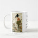 Do you practice Tsundoku? "Collecting more books than I can read and they just pile up." Charming mug with image of a young woman with her books.