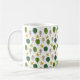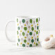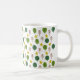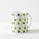 Esta taza tiene un diseño escandinavo repetitivo de un bosque en tonos marrones y verdes y amarillos.