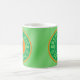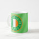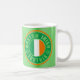 Southie Mug, americano de Boston. Diseño de círculo en naranja y verde con el texto Motivos de nudos nudos celtas y surestes irlandeses de Boston.