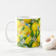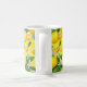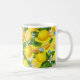 Brighten your morning routine with this uniquely designed lemon and vitamin botanical mug. This eye-catching pattern features a lush, maximalist illustration of zesty yellow lemons, delicate white blossoms, and deep green leaves, artfully mixed with colorful supplement capsules and tablets.