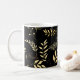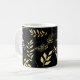 Taza Botánico Negro y Dorado Glam Hojas Florales Chic