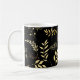 Taza De Café Botánico Negro y Dorado Glam Hojas Florales Chic