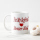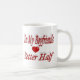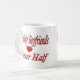 Mug con yo soy la mejor mitad de mi novio en texto rojo 3D. Disponible en varios tamaños y estilos.