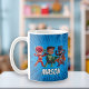 Make every sip more heroic with this boys superhero custom name mug! Designed with bold comic-style superhero graphics in vibrant blue, red, yellow, and black, this personalised mug can be customised with your child’s name for a fun and practical keepsake. Perfect for boys who love superheroes, it’s great for everyday drinks, kids rooms, or adding superhero style to any home.