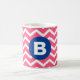Taza De Café Bright Pink and White Chevron Pattern Monogram
