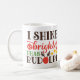¡Que tu personalidad destaque esta temporada con la taza de café I Shine Brighter Than Rudolph! Perfecto para los que les gusta destacar, esta copa festiva es un gran regalo para los amantes de las vacaciones y para los aficionados a Rudolph. Utilícelo para el café matutino, el cacao o el té mientras se celebra la temporada. Una taza de Navidades divertida y alegre que trae alegría con cada sorbo.