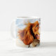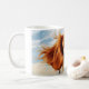 Un espátula naranja y blanca de Bretaña con una piel larga y fluida está sacando la cabeza de una ventana de auto. La lengua del perro está pasando el rato, y sus orejas están ondeando en el viento. La piel del perro es una mezcla de marrón y blanco, y sus ojos son marrones. El fondo es un cielo azul con nubes blancas. La imagen tiene un ánimo alegre y juguetón, capturando la alegría de un perro disfrutando de un paseo en auto. Un regalo perfecto para los amantes de la Bretaña.