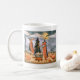 Tres Dachshunds en gorras y cabos de la bruja se encuentran en un claro iluminado por la luna para cocinar para arriba algunos huesos del guisado en su caldera. Arriba, otro Dachsie vuela delante de la luna en un palo de escoba. Este ilustracion bewitching es perfecto para Halloween o el amante del perro de la salchicha de Frankfurt de Wiccan en su vida.