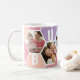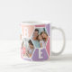 Honeycomb coffee mug, personalizado con 5 de tus fotos favoritas e impreso con un nombre de 5 letras, como BUBBE. El diseño presenta un collage de fotos en un sorbete de verano de color rosa lila y melocotón. Si desea cambiar los colores, haga clic en "personalizar más adelante" y haga clic en cada hexágono que desee cambiar.