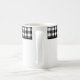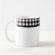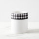 This ceramic coffee mug is shown with a lovely black and white color buffalo plaid.