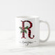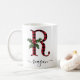 Negro y Rojo Buffalo Plaid R Monograma Xmas Coffee Mug con una linda letra inicial con un patrón de manchas de búfalo y un elemento de acuarela mistletoe. La plantilla de nombre personalizada bajo el monograma R se encuentra en un tipo de letra caligrafía manuscrita con florituras. Dé a un Navidad personalizado y atento como regalo de vacaciones de invierno o como obsequio de medias. Para una carta monográfica diferente, consulte la sección "Otros productos de esta colección" que aparece a continuación.