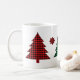 This ceramic coffee mug is shown with a cute buffalo plaid trees print.