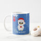 Taza de búho blanco de Navidad adorable. El texto se puede personalizar. ¡Feliz Navidad!