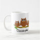 Taza de café con diseño de búho. Puedes personalizar esta taza con cualquier texto de tu elección. Si necesitas ayuda con la personalización, contáctanos a través del enlace de mensaje en esta página. Taza de café personalizada con diseño de búho.