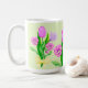 Montón de flores de primavera, tulipanes y panecillos atados con cinta amarilla.