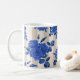 Taza De Café Buquetos azules de rosas en un fondo a rayas