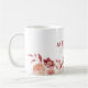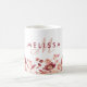 Taza De Café Burgundy y Flores Rosadas Acuarela Nombre Monogram