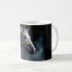 Caballo con fondo negro con tintes azules Coffee Mug. Hermoso lindo retrato de caballo azul tintado con fondo negro con niebla detrás.