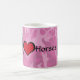 Una silueta de la cabeza de un caballo sobre un fondo de camuflaje rosa con un corazón rojo/negro y la palabra "Caballos". Personalizar con su nombre. ¡El regalo perfecto para tu amante de los caballos!