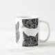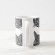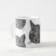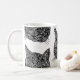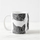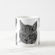 Cabeza ornamental en blanco y negro de un gato, inspirada en un animal de la vida real y dibujada originalmente con lápiz sobre papel.
