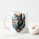 La majestuosa cabeza de lobo rodeada de llamas y agua. El lobo simboliza la fuerza, el coraje y la fauna, mientras que el fuego representa la pasión, la energía y la transformación. Sin embargo, el agua es tranquila, de buena calidad y equilibrada. La combinación de estos elementos crea una fascinante imagen de contrastes y armonía al mismo tiempo.