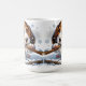 Un pequeño cachorro de basset disfrutando de la nevada mientras juega con un palo en la nieve. Presenta una animada escena de invierno con copos de nieve y una expresión divertida que capta la alegría y el calor.