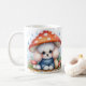 Este encantador diseño cuenta con un adorable cachorro de Poodle, muy bonito, sentado bajo un amplio paraguas de setas. La piel esponjosa del cachorro y la expresión linda le dan un toque de alegría y calidez a la escena. Rodeado de hongos más pequeños, este encantador ilustracion capta la esencia de la belleza de la naturaleza y la inocencia de un cachorro joven. Perfecto para los amantes del perro y para los que aprecian el arte adorable y reconfortante, este diseño hará sonreír a cualquiera.