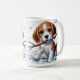Taza De Café Cachorro jugando en la nieve con palo en invierno