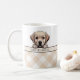 ¡Celebra el vínculo más dulce con esta adorable taza de café "Mejor Mamá Perro"! Con un fondo cálido de gingham beige y una ilustración adorable de un cachorro de Labrador Retriever, esta taza es perfecta para las mamás orgullosas de sus perros. Ya sea para el café de la mañana o la hora del té, honra la alegría de ser padres de mascotas de la manera más adorable. Un regalo considerado y elegante para cumpleaños, Día de la Madre o simplemente porque sí.