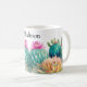 Esta hermosa taza de café con un ilustracion de cactus y un suculento es el regalo perfecto para alguien que ama estas maravillosas plantas. Este diseño atrevido y hermoso es definitivamente llamativo. El nombre de la taza es personalizable y sería un gran regalo personalizado.