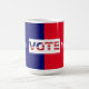 VOTE Texto rellenado con colores de Bandera con un borde azul y rojo. Distintivo.
