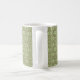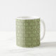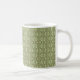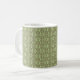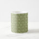 Esta taza tiene un diseño art déco de tres óvalos rotos a través de dos rectángulos muy delgados en verde camuflaje sobre un fondo de verde claro. ¿Quieres el mismo diseño con diferentes colores? Envíame un mensaje