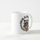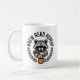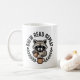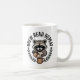 Un cálido ilustracion a la moda de un mapache en un pequeño delantal de barista que sirve café junto a una pila de libros abiertos. La frase "Brew Read Repeat" (Repetición de lectura rápida) se encuentra en la parte superior, se representa con letras en bloques amigables y un matiz café-marrón. Los rellenos vectoriales planos y las líneas nítidas garantizan la impresión de las obras de arte claramente en cerámica, al tiempo que transmiten una energía de lectura y café acogedora.