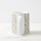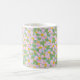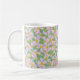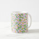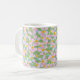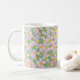 Un tazón de café blanco muy bonito, con un patrón nostálgico de dogrosis rosa sobre un fondo azul cielo. Parte de la colección Posada Rosy y Pintorly.