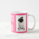 Muestra tu amor por el Pug con esta linda jarra Pug. Esta divertida taza de café muestra un retrato de un perro cachorro Pug resaltado en un fondo rosa brillante con las palabras Love Pug en una fuente alegre y divertida.
