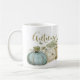En esta taza de café clásica aparecen hermosas calabazas acuáticas en tonos azules y marrones sobre un fondo blanco. La palabra "Otoño" está escrita en la parte superior alrededor de la taza. Coordina con los otros diseños de la Colección Calabaza Azul de Otoño de la tienda de artesanías Vintage Mama.